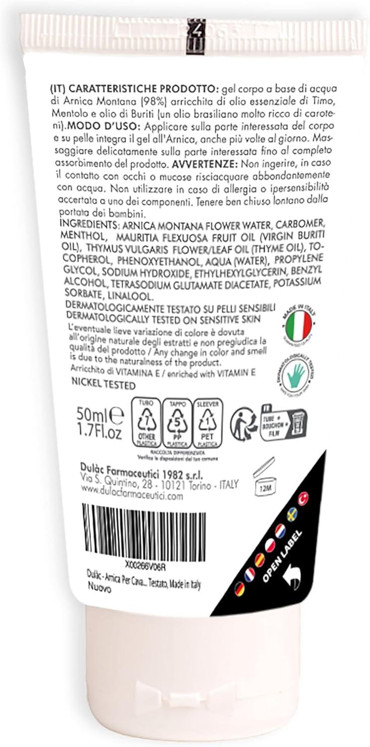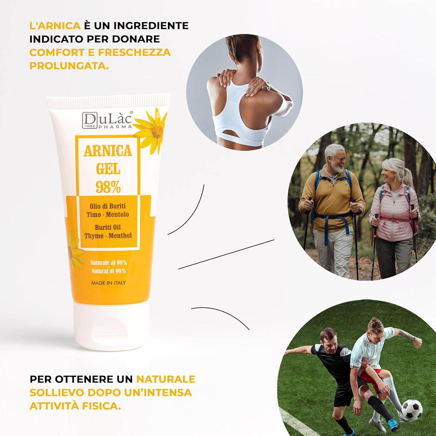 Extra Strong: Dulàc Arnica Gel contains 98% arnica montana, enriched with soothing natural extracts for immediate relief; ideal for intense massage on fatigued muscles and joints